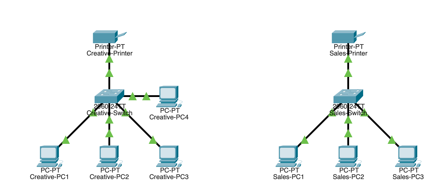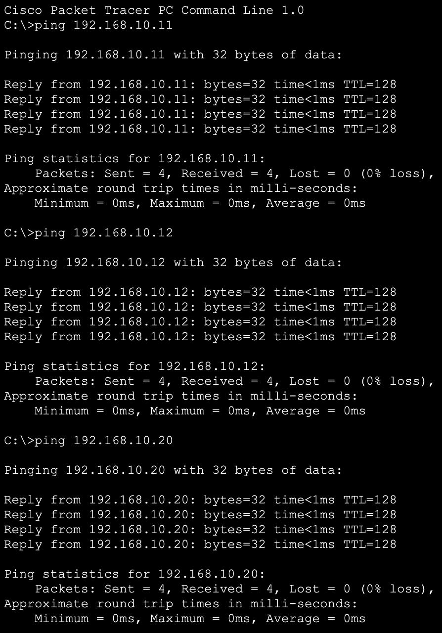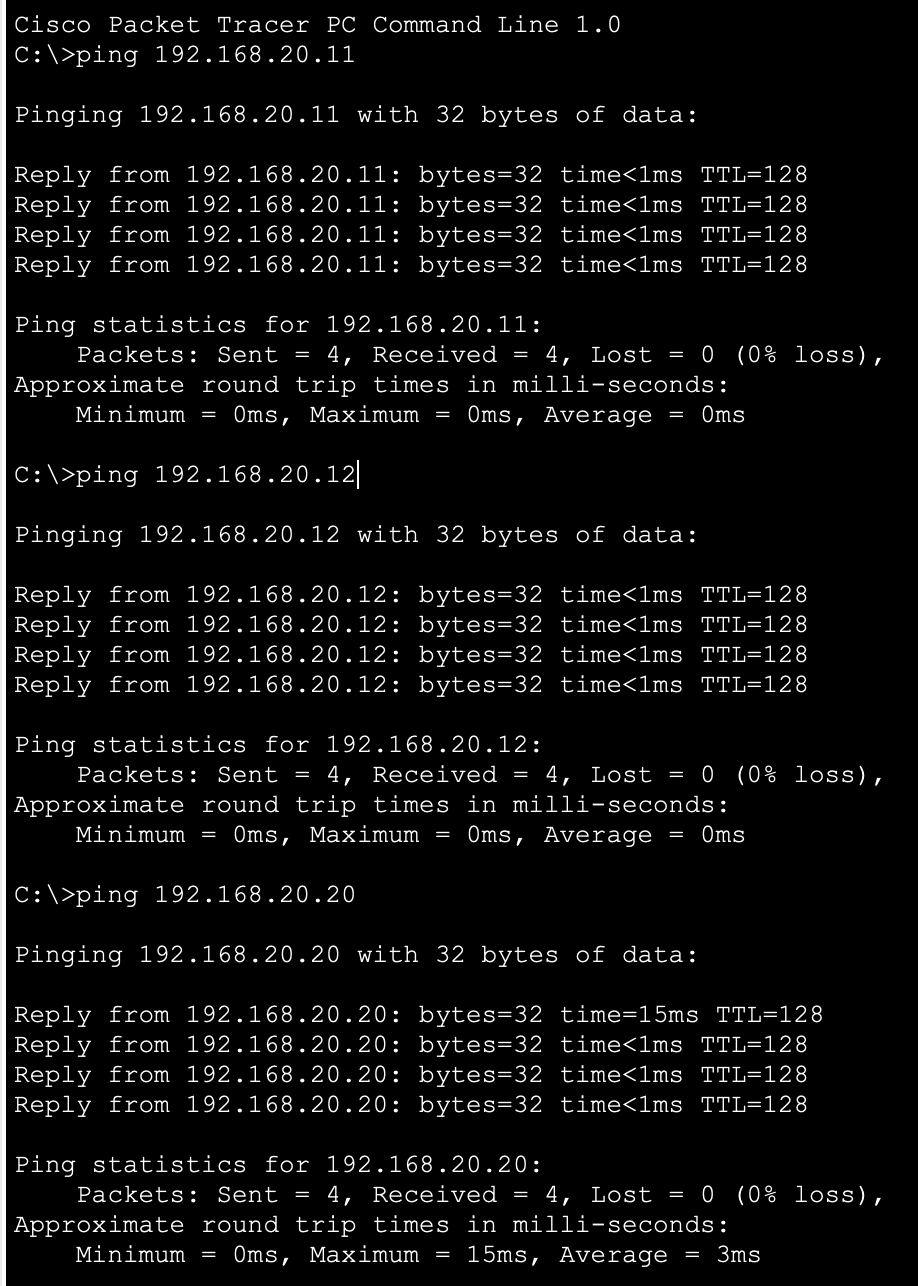 | Sales-PC1 | 192.168.20.10 | 255.255.255.0 | 192.168.20.1 |