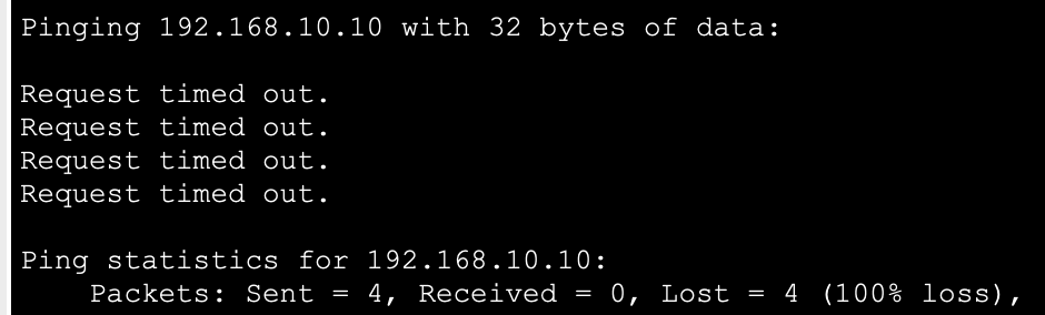 | Sales-PC1 | Creative-PC1 | 192.168.10.10 | Fail |